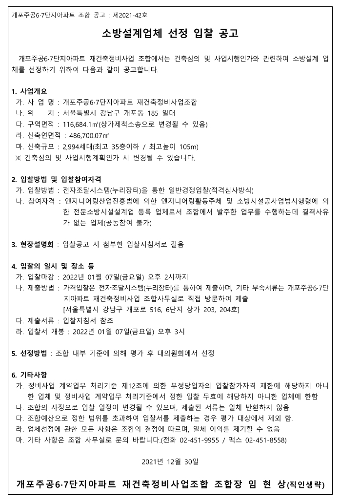 추진위원회/조합명 : 개포주공6,7단지아파트 재건축정비사업조합