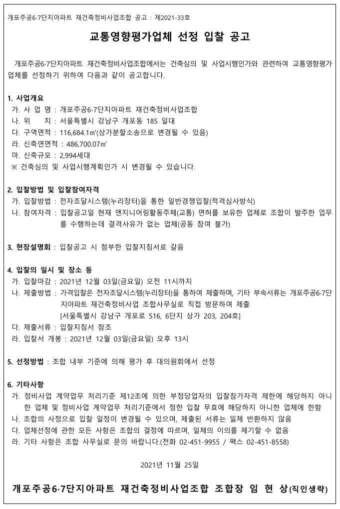 추진위원회/조합명 : 개포주공6,7단지아파트 재건축정비사업조합