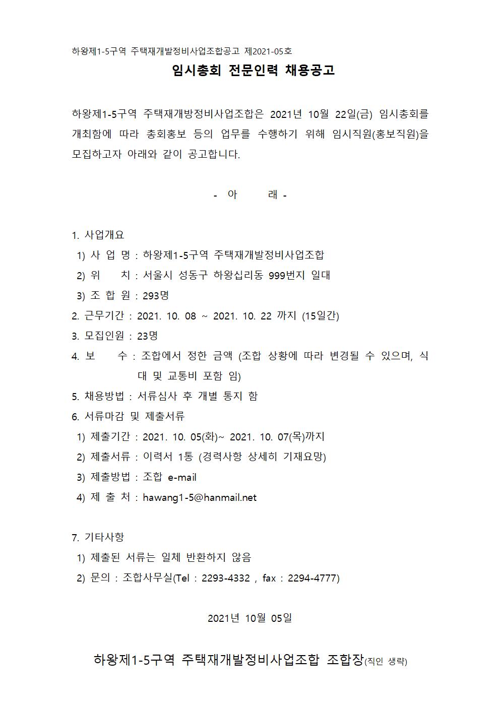 추진위원회/조합명 : 하왕제1-5구역주택재개발정비사업조합