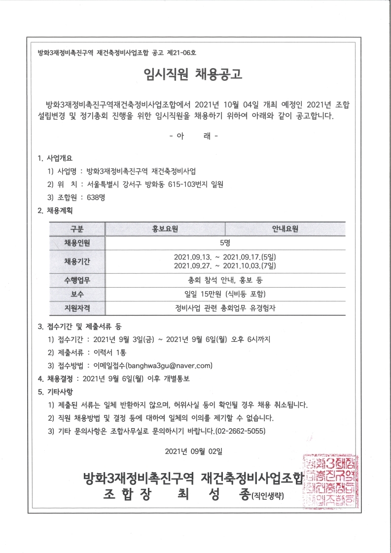 추진위원회/조합명 : 방화3재정비촉진구역 재건축정비사업조합