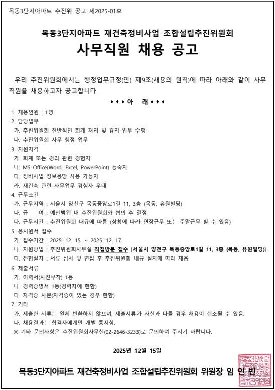 추진위원회/조합명 : 목동3단지아파트 재건축정비사업