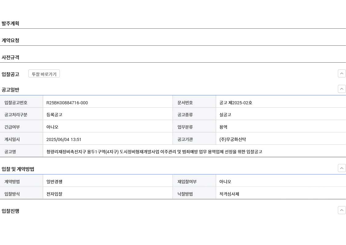 입찰명 : 청량리재정비촉진지구 용두1구역(4지구) 도시정비형 재개발사업 이주관리 및 범죄예방 선정 입찰공고