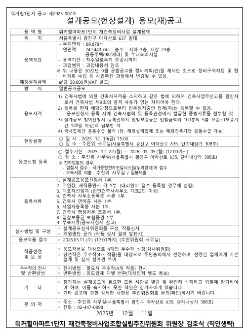추진위원회/조합명 : 워커힐아파트1단지 재건축정비사업 조합설립추진위원회
