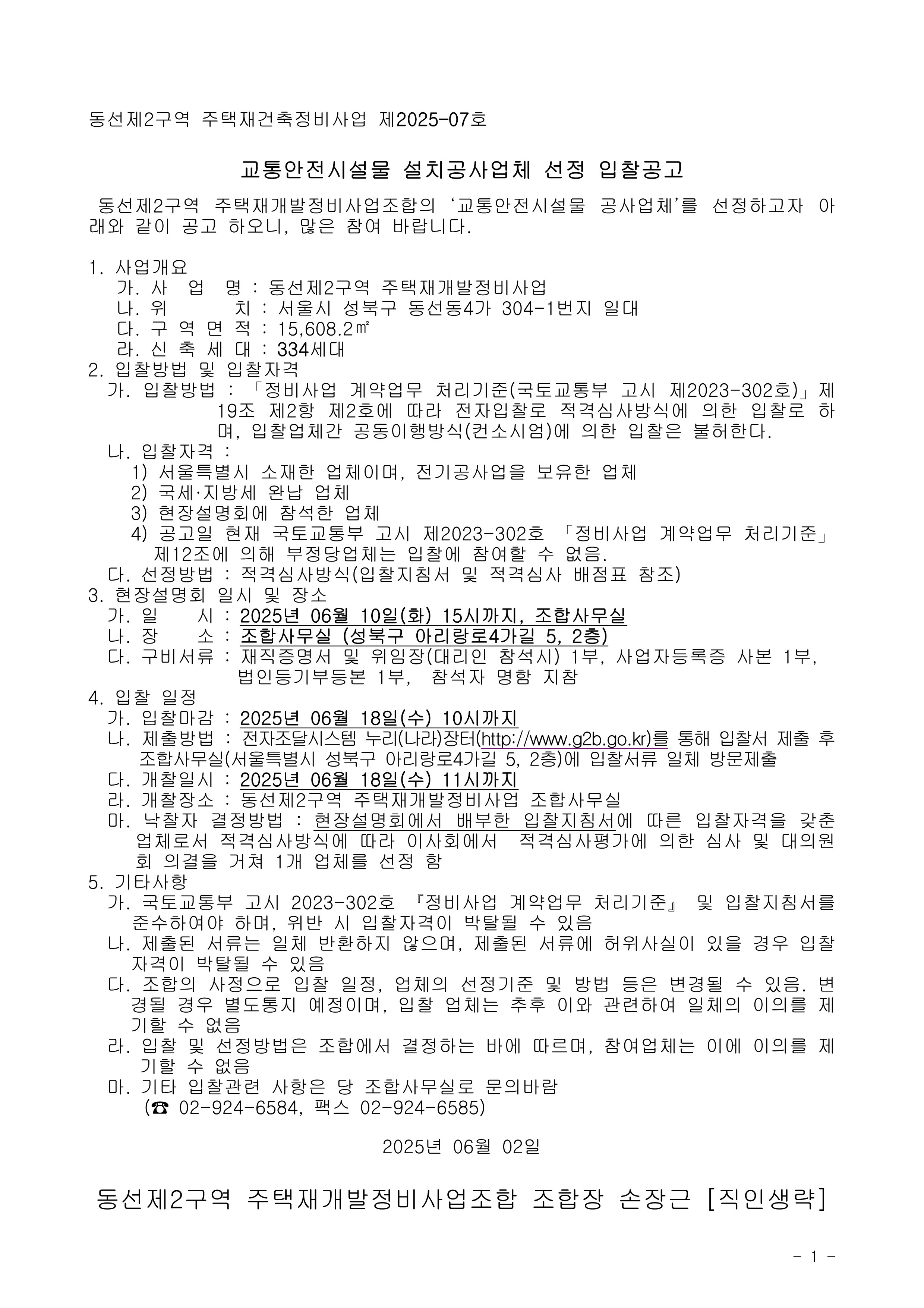 추진위원회/조합명 : 동선제2구역 주택재개발정비사업조합