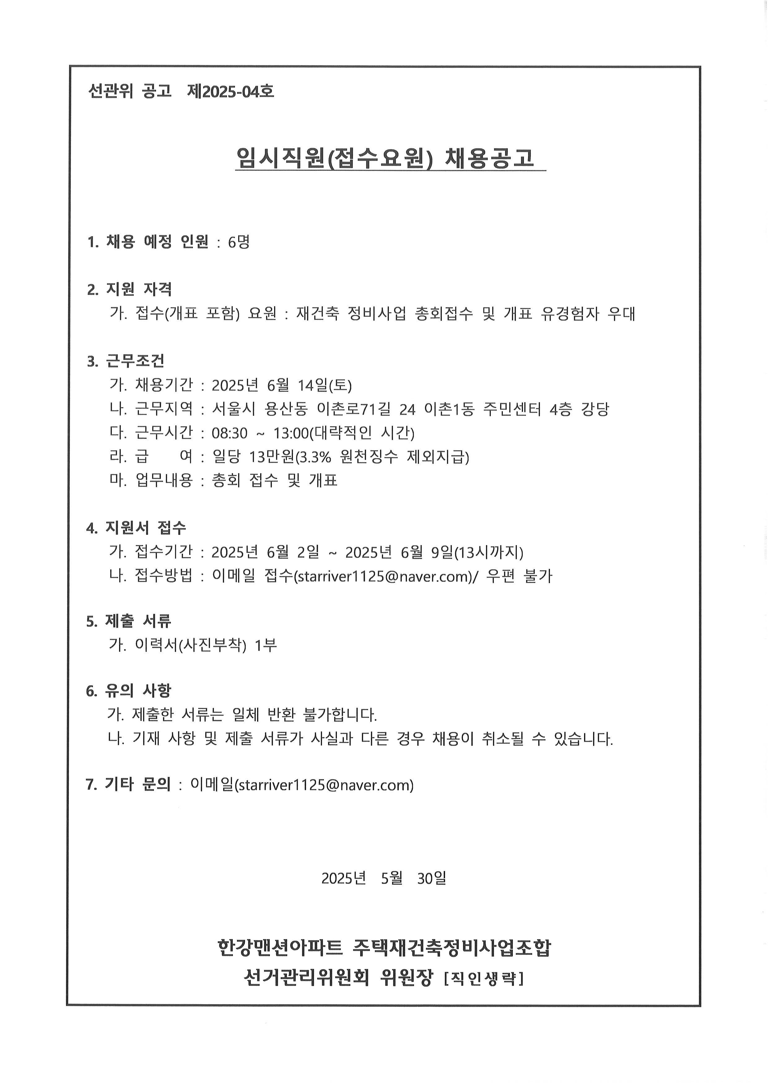추진위원회/조합명 : 한강맨션아파트 주택재건축 조합