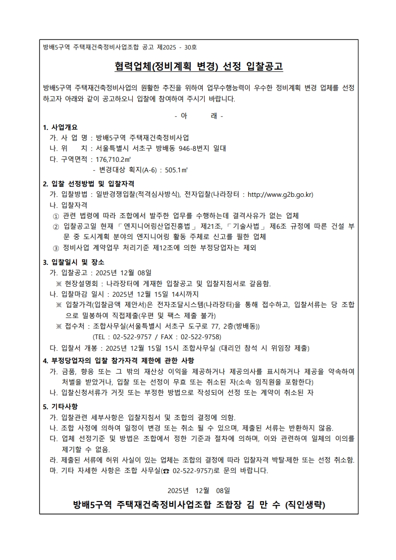 추진위원회/조합명 : 방배5구역주택재건축정비사업조합