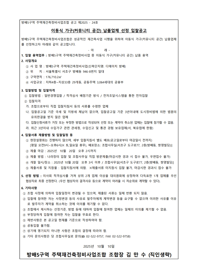 추진위원회/조합명 : 방배5구역주택재건축정비사업조합