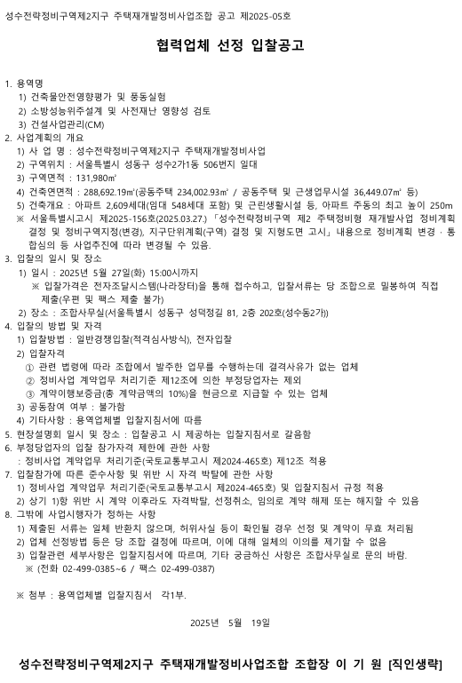성수2 건설사업관리(CM) 협력업체 선정 입찰공고