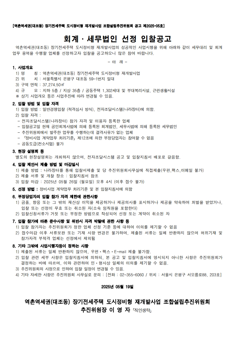 추진위원회/조합명 : 역촌역세권(대조동) 장기전세주택 도시정비형재개발사업